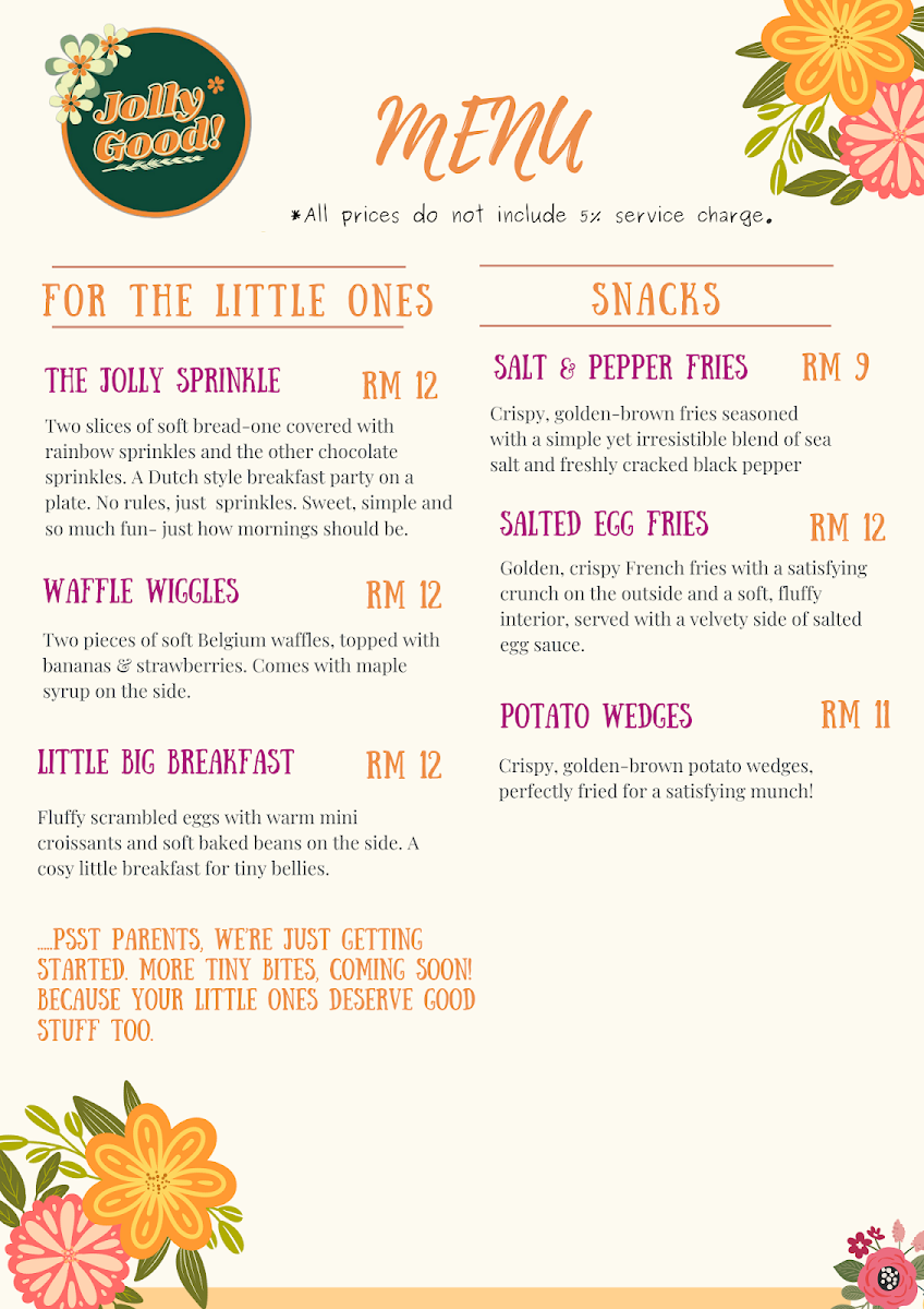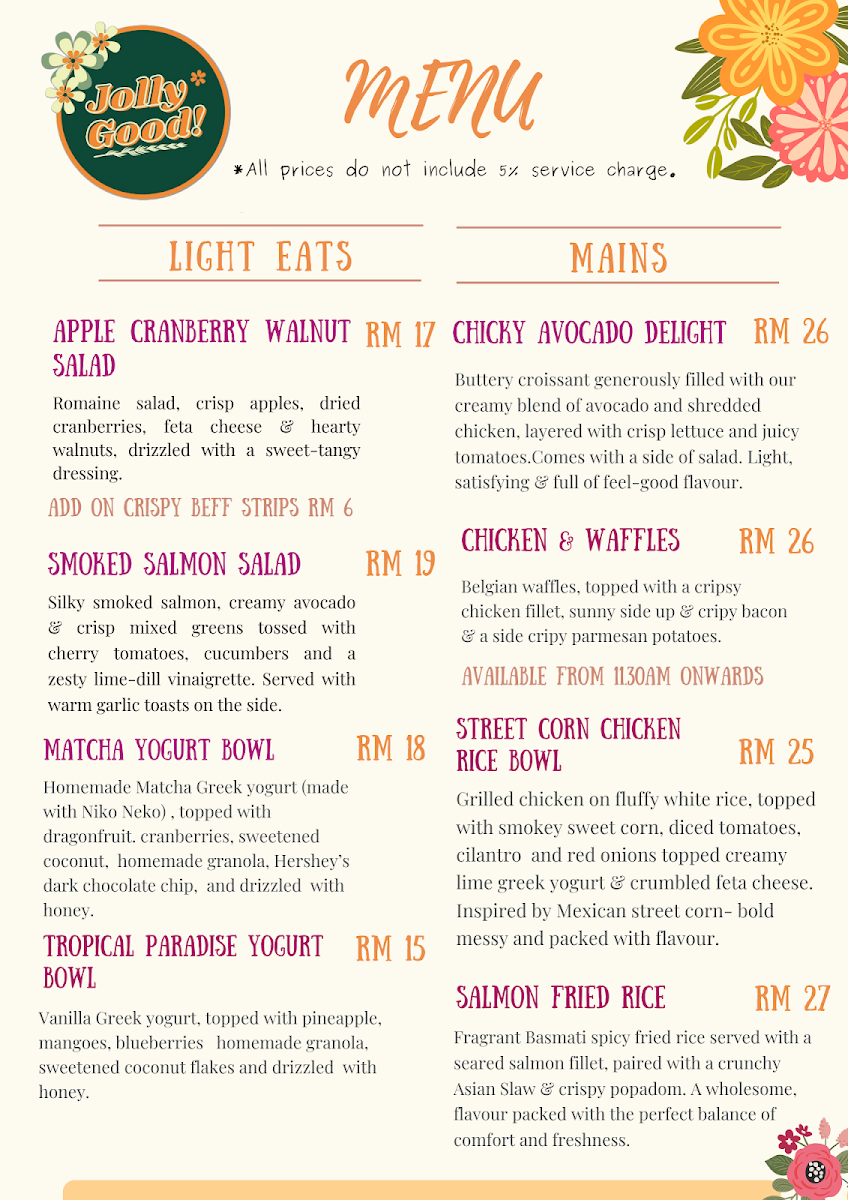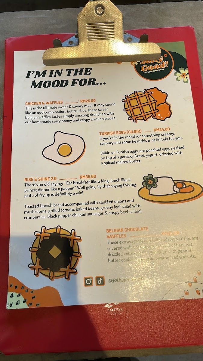 Welcome to Jolly Good, a delightful café nestled in the serene surroundings of Kuala Terengganu. Known for its cozy ambiance and friendly service, this charming spot is perfect for starting your day with a delicious meal. The menu is thoughtfully curated, featuring items like the hearty Miss Jolly's breakfast sandwich and the crowd-favorite Rise and Shine, both of which promise to kickstart your morning on a flavorful note.